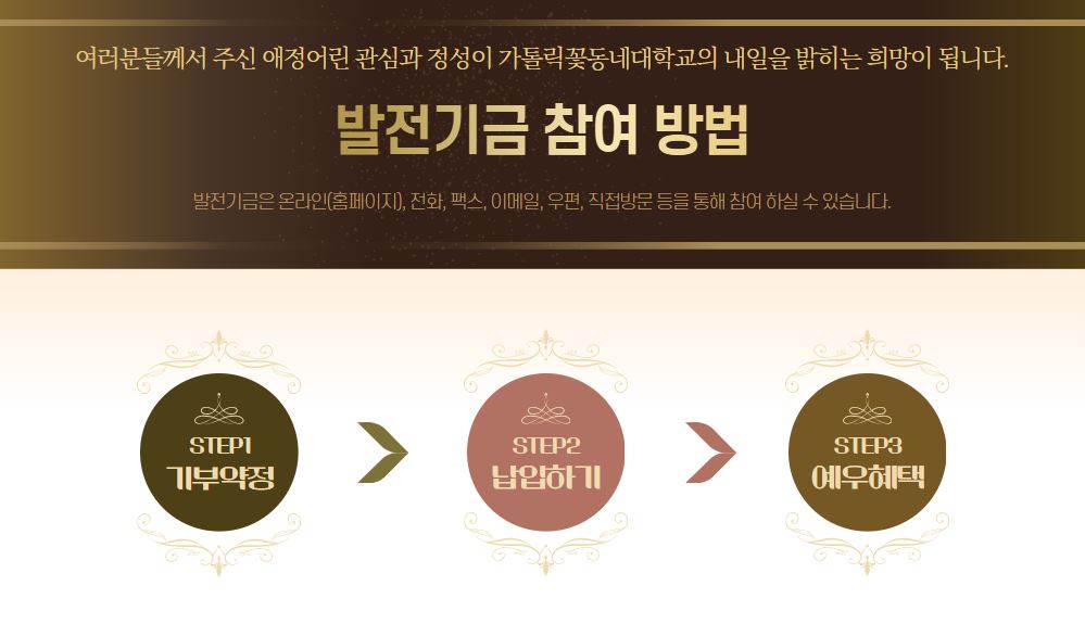 • 가톨릭꽃동네대학교로 오셔서 기금을 직접 전달하실 수 있습니다.